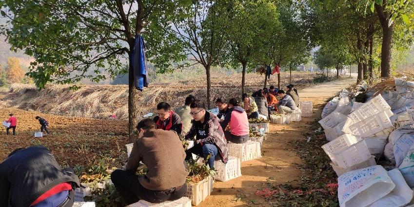 11月28-29日,楊躍軍組織公司公共技術系統16余人在劉仁八鎮進行分株移栽工作,另請當地藥農進行整地、栽種。