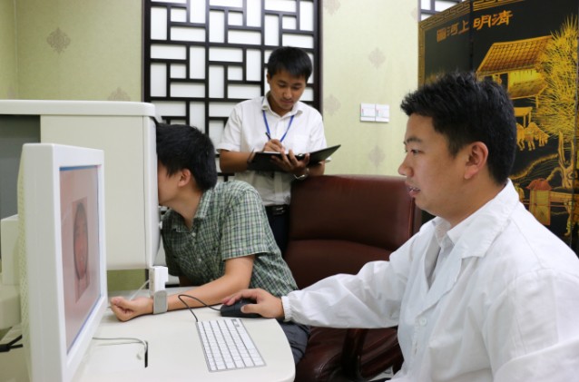 9月2日,勁牌健康管理中心數字化診療室里,健康管理顧問閔楠帶著會員陳總前來接受體質檢測,資深中醫博士殷濤依次對其進行面診、脈診、舌診……閔楠則在一旁認真記錄殷博士強調陳總的日常飲食注意事項。